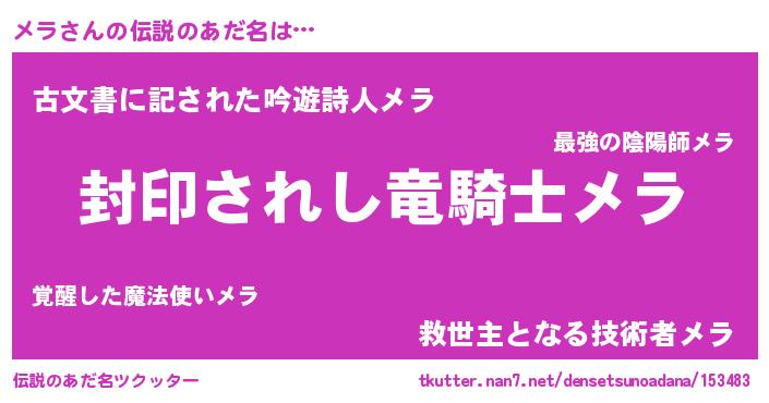 | ポケモン風あだ名 | 『メラチュウ』『メラキング』 |