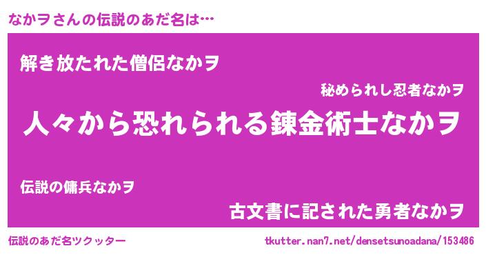 | 意味不明あだ名 | 『眠気覚ましガムなかヲ味』『自称なかヲ』 |