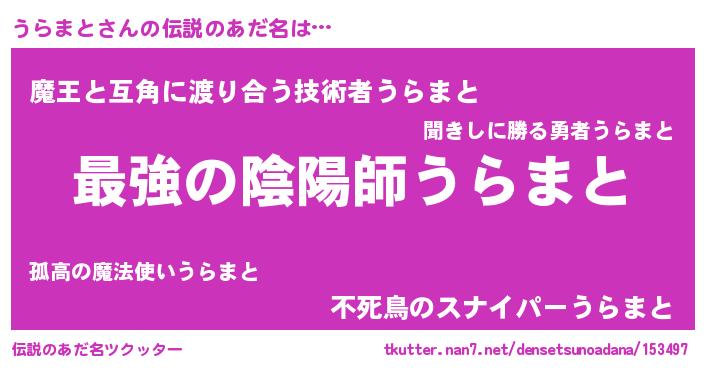 | ヒーロー風カッコイイあだ名 | 『仮面ウラダー』『ウルトラうらまとマン』 |