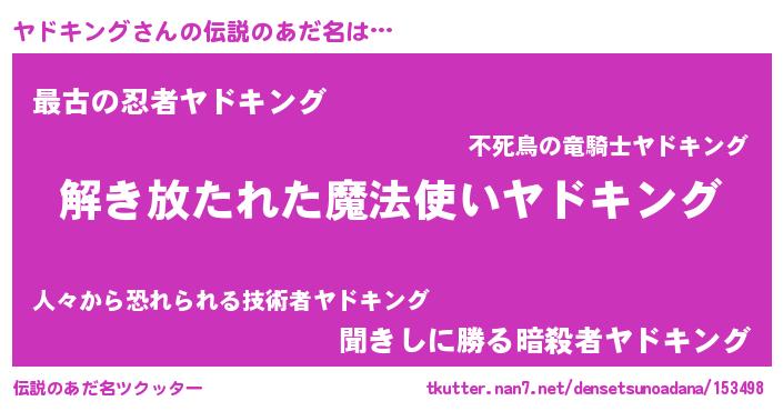 | 意味不明あだ名 | 『自称ヤドキング』 |