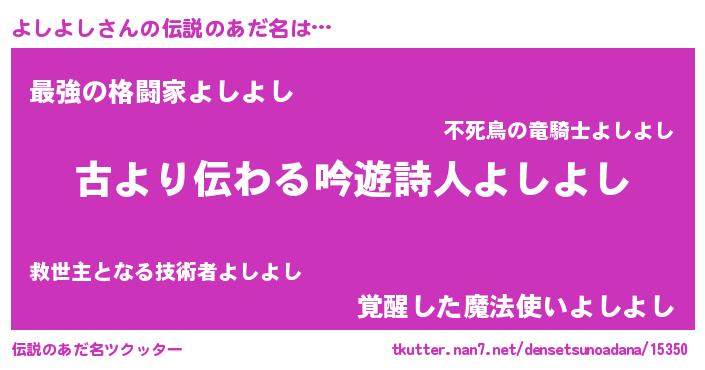 | ヒーロー風カッコイイあだ名 | 『ネオヨシヨシ』『ウルトラよしよしマン』 |