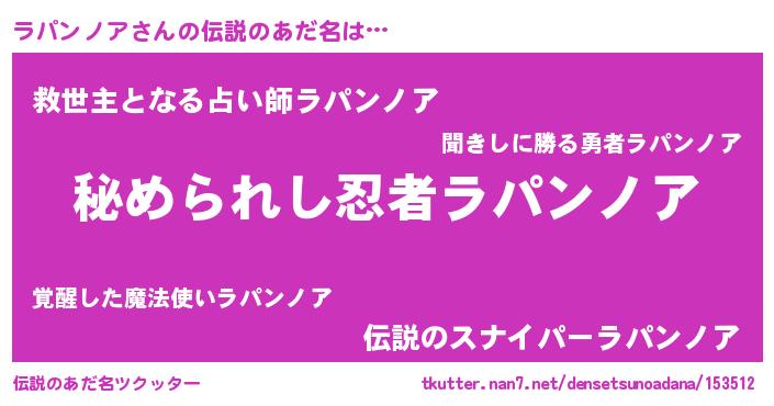 | ファンタジー風あだ名 | 『エターナルラパンノアー』『ラパフェル』 |