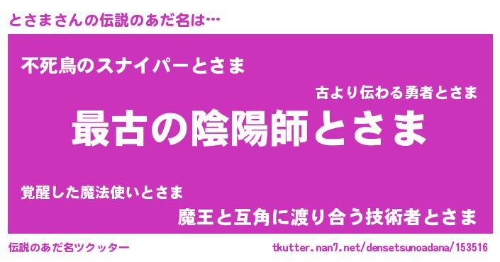 | ヒーロー風カッコイイあだ名 | 『ウルトラとさまマン』『仮面トサダー』 |