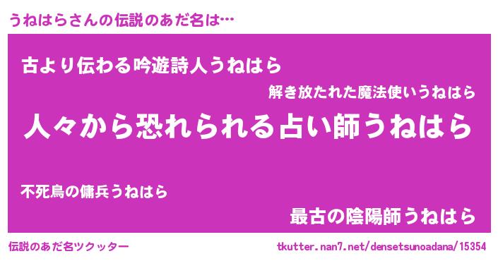 | ヘコむあだ名 | 『うねはら(笑)』『なまこ酢』 |