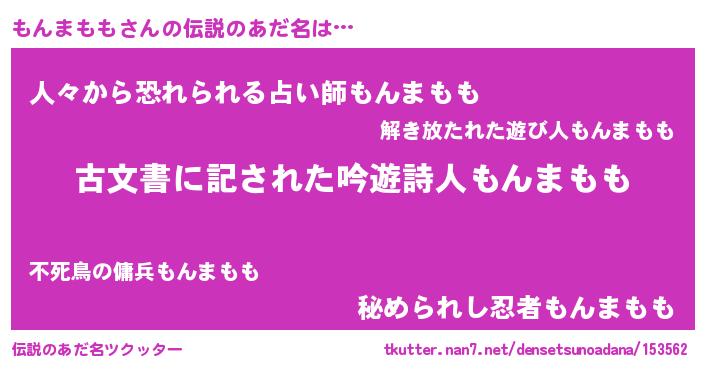 | 意味不明あだ名 | 『自称もんまもも』『永久保存もんまもも』 |