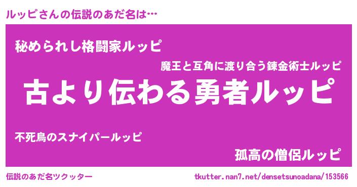 | 男性向けラノベタイトル風あだ名 | 『転生したらルッピだった件』 |