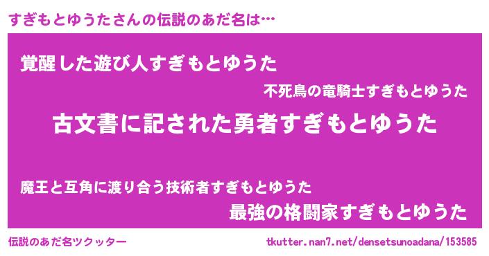 | ポケモン風あだ名 | 『ゼニスギ』『ヒスギモトユウタ』 |