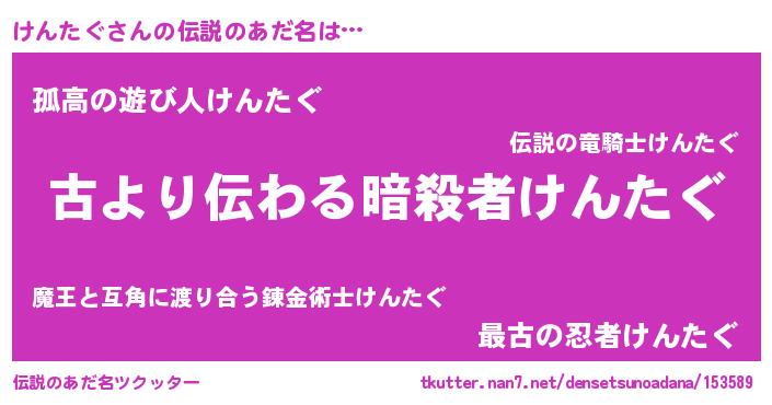| ヒーロー風カッコイイあだ名 | 『仮面ケンダー』『ネオケンタグ』 |