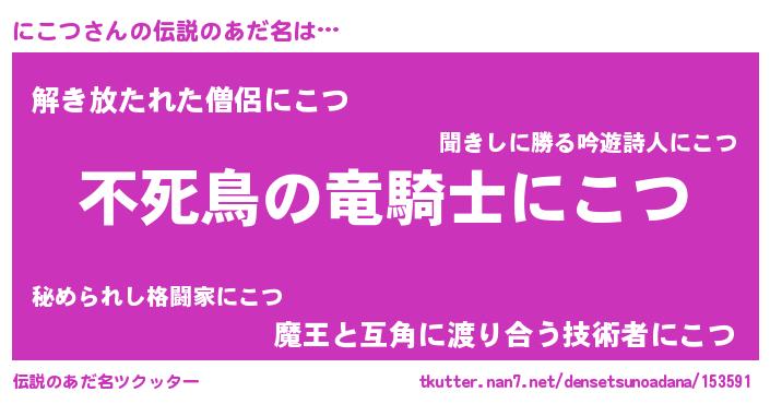 | 男性向けラノベタイトル風あだ名 | 『にこつの憂鬱』『はたらくにこつさま!』 |