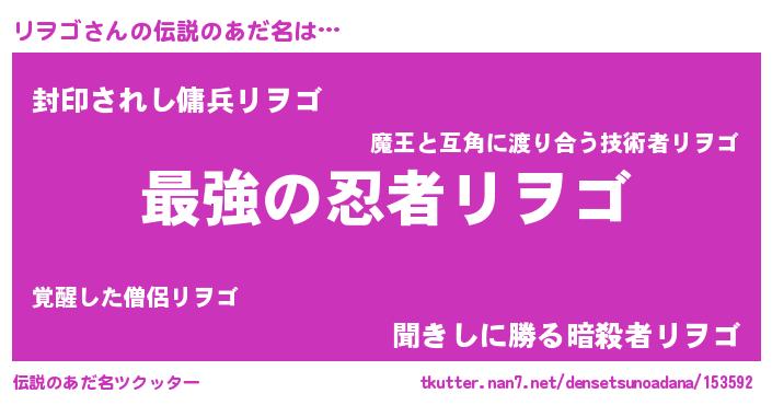| 男性向けラノベタイトル風あだ名 | 『リヲゴに滅ぼされるだけの簡単なお仕事です』 |