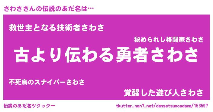 | ヘコむあだ名 | 『さわさ(苦笑)』『さわを』 |