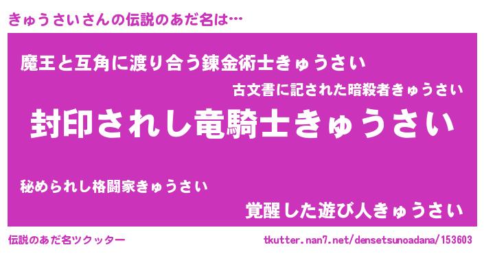| 胡散臭い通販商品みたいなあだ名 | 『億万長者になれるブレスレット…その名も「きゅうさい」』 |