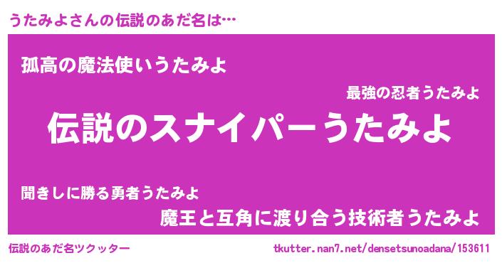 | ヒーロー風カッコイイあだ名 | 『スーパーウタミヨ』『魔戒騎士ウタ』 |
