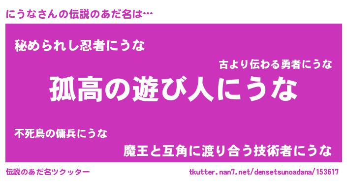 | 女子向けラノベタイトル風あだ名 | 『にうなは平凡を望む』『にうな恋絵巻』 |
