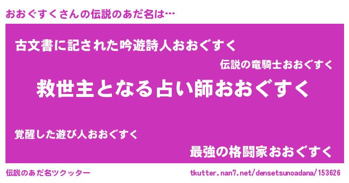 | 男性向けラノベタイトル風あだ名 | 『ノーゲーム・ノーオオグスク』 |