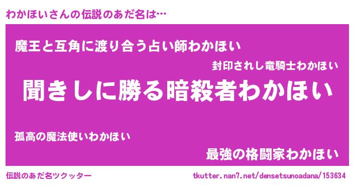 | 意味不明あだ名 | 『住所不定無職わかほい(43歳)』 |