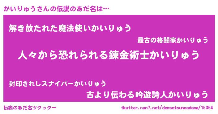 | ヒーロー風カッコイイあだ名 | 『正義の使者かいりゅう』『銀牙騎士カイ』 |