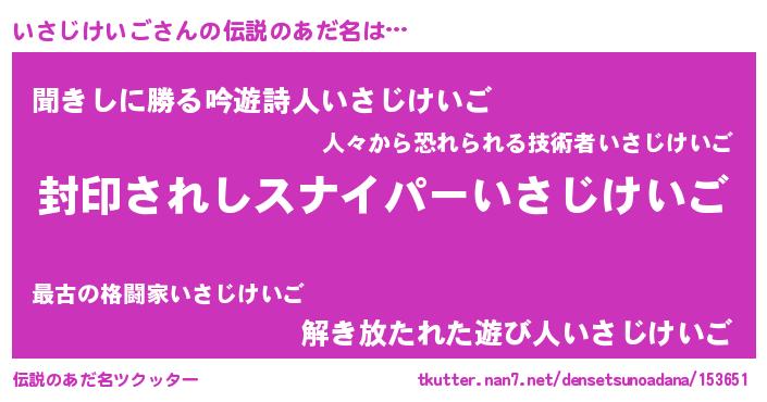 | 意味不明あだ名 | 『自称いさじけいご』 |