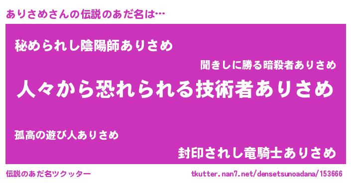 | 男性向けラノベタイトル風あだ名 | 『アリサメスレイヤー』 |