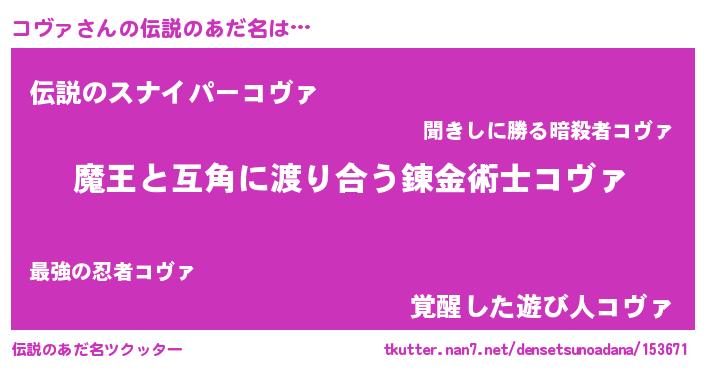 | ヒーロー風カッコイイあだ名 | 『愛の使者コヴァ』『スーパーコヴァ』 |