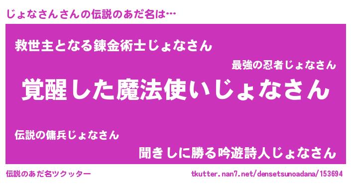 | ヒーロー風カッコイイあだ名 | 『仮面ジョダー』『幻影騎士ジョ』 |