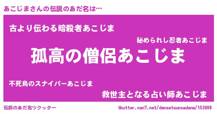 | ヒーロー風カッコイイあだ名 | 『暗黒騎士アコ』『ネオアコジマ』 |