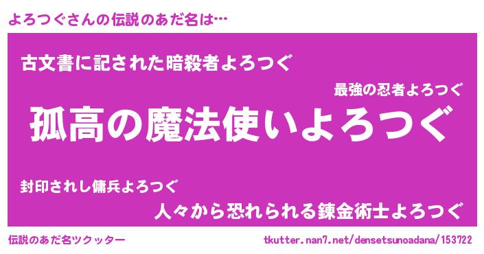 | 胡散臭い通販商品みたいなあだ名 | 『信頼と実績のサプリメント…その名も「よろつぐ」』 |