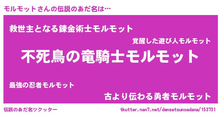 | ヒーロー風カッコイイあだ名 | 『スーパーモルモット』『ネオモルモット』 |