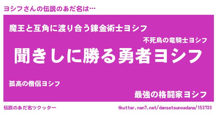 | 男性向けラノベタイトル風あだ名 | 『ヨシフという概念が存在しない退屈な世界 』 |