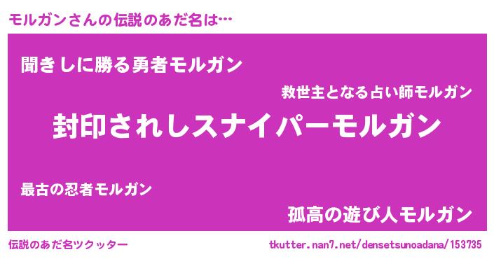 | ヒーロー風カッコイイあだ名 | 『スーパーモルガン』『ネオモルガン』 |