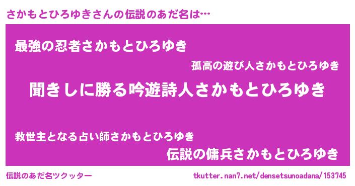 | 意味不明あだ名 | 『住所不定無職さかもとひろゆき(12歳)』 |