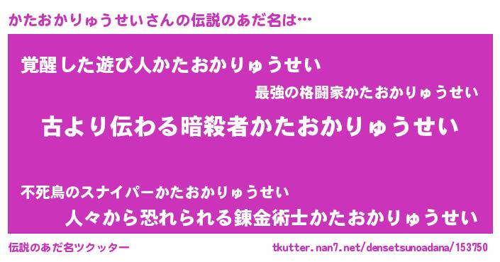 | ヒーロー風カッコイイあだ名 | 『ネオカタオカリュウセイ』 |