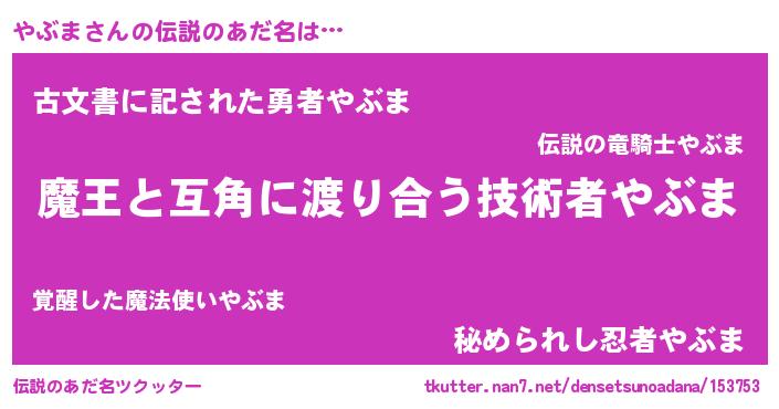 | ヒーロー風カッコイイあだ名 | 『愛の使者やぶま』『究極戦士ヤブマ』 |