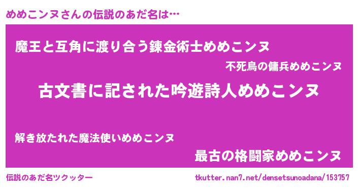 | 欧米人風あだ名 | 『ケンブリッジめめこンヌ』 |