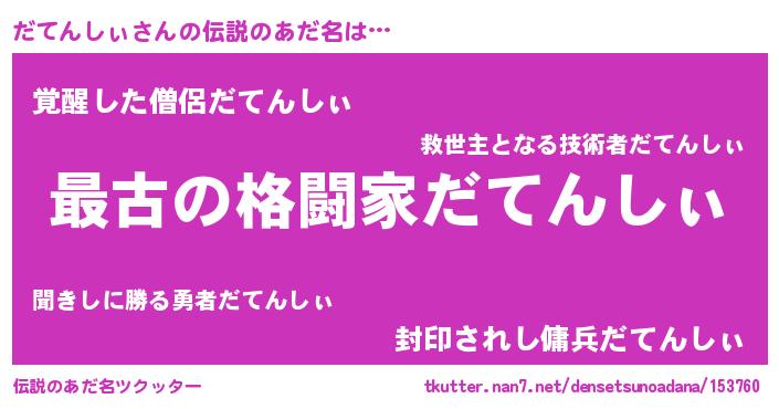 | 男性向けラノベタイトル風あだ名 | 『転生したらだてんしぃだった件』 |