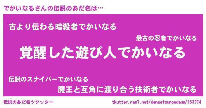 | 男性向けラノベタイトル風あだ名 | 『この素晴らしい世界にでかいなるを!』 |