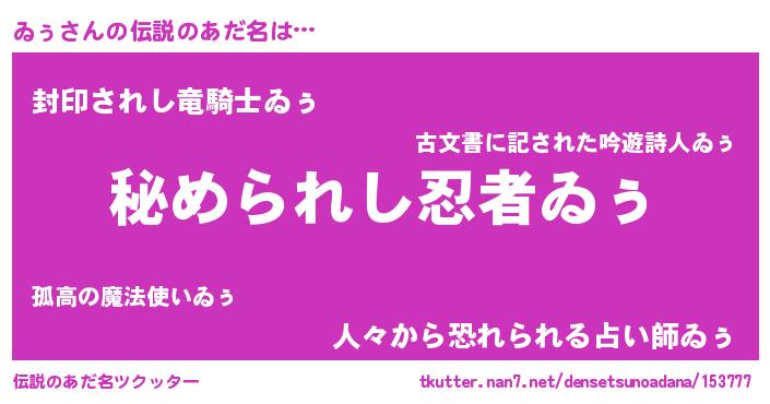 | ヒーロー風カッコイイあだ名 | 『仮面ヰゥダー』『超時空戦士ヰゥ』 |