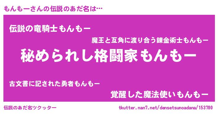 | ヒーロー風カッコイイあだ名 | 『仮面モンダー』『ウルトラもんもーマン』 |
