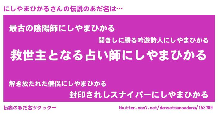 | 恥ずかしいあだ名 | 『ニシヤマヒカルデラックス』『にしちん』 |