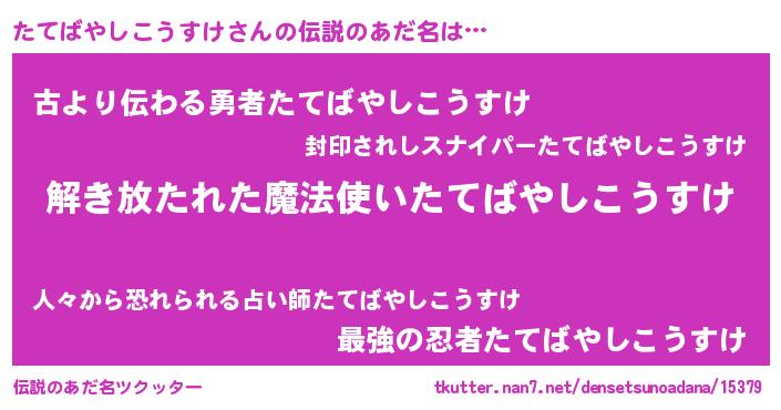 | 胡散臭い通販商品みたいなあだ名 | 『伝統あるサプリメント…その名も「たてばやしこうすけ」』 |