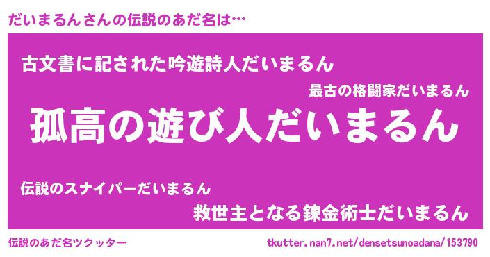 | 意味不明あだ名 | 『住所不定無職だいまるん(89歳)』 |