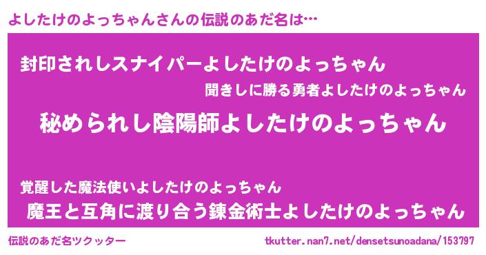 | 意味不明あだ名 | 『自称よしたけのよっちゃん』 |