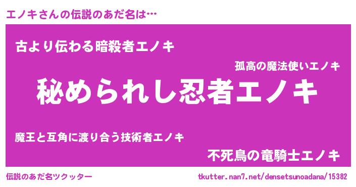 | 男性向けラノベタイトル風あだ名 | 『緋弾のエノキ』『エノキの憂鬱』 |