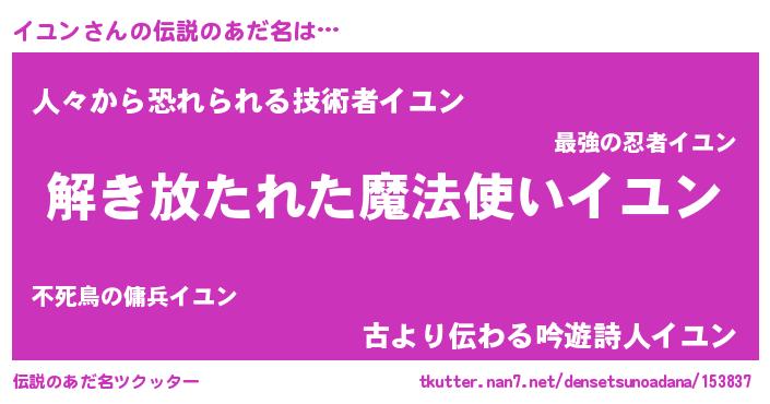 | 男性向けラノベタイトル風あだ名 | 『イユンの嫁は女の子じゃないと思った?』 |