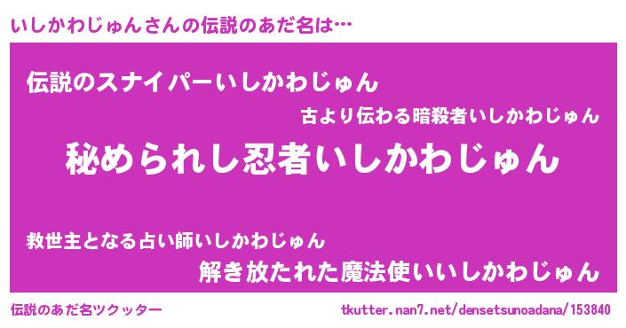 | 女子向けラノベタイトル風あだ名 | 『いしかわじゅんの雑貨屋さん』 |