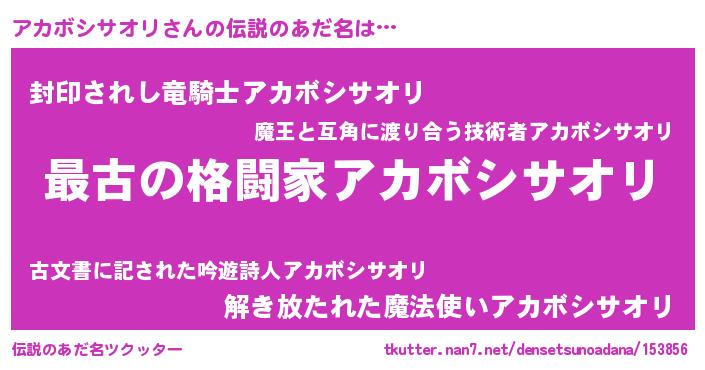 | ファンタジー風あだ名 | 『エターナルアカボシサオリー』 |