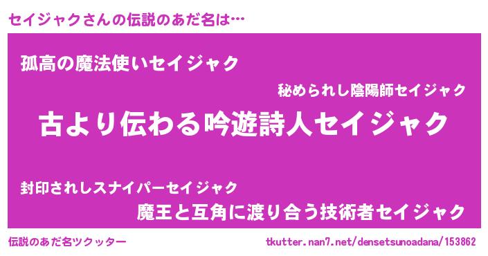 | ヒーロー風カッコイイあだ名 | 『サイバー戦士セイジャク』 |