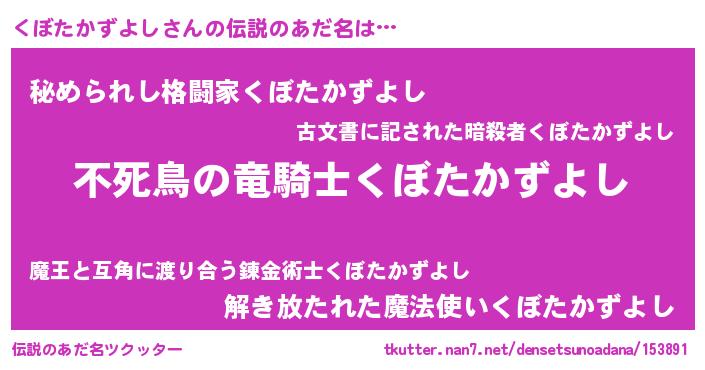| ヒーロー風カッコイイあだ名 | 『スーパークボタカズヨシ』 |
