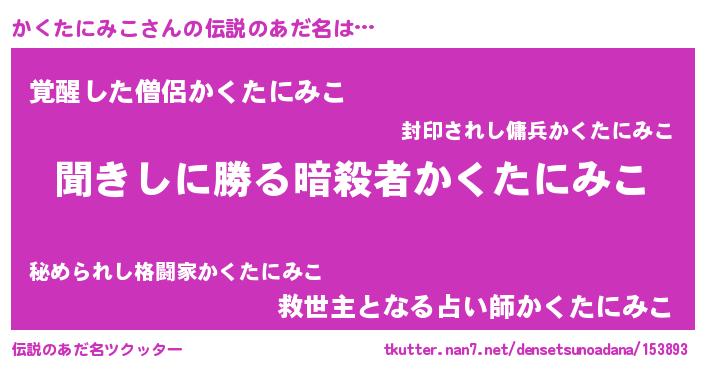 | 男性向けラノベタイトル風あだ名 | 『かくたにみこという概念が存在しない退屈な世界 』 |