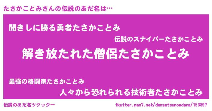 | 意味不明あだ名 | 『とにかく怪しいたさかことみ』 |